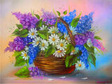 Картина по номерам «Плетёная корзинка с гиацинтами и ромашками» 40x50 см